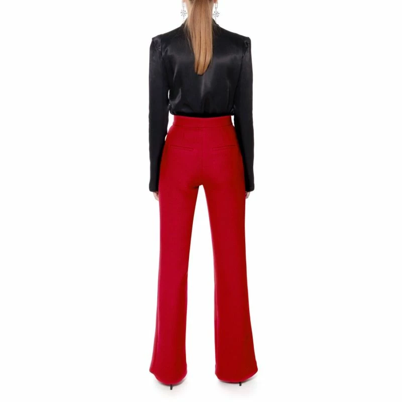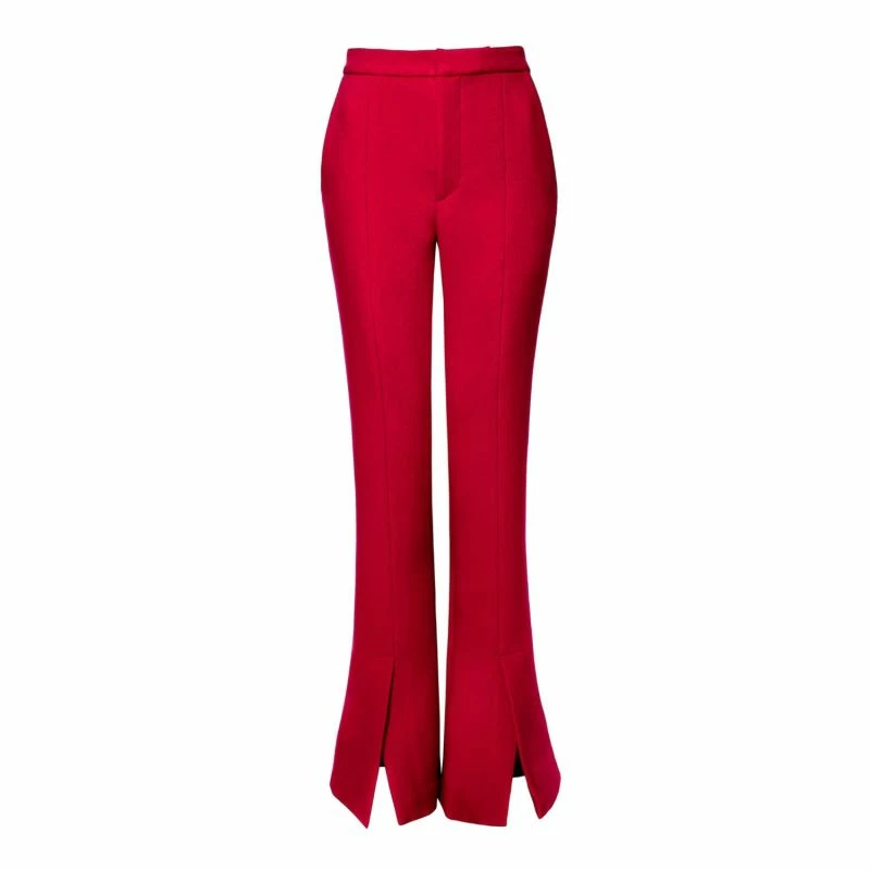 Elegant flared pants with slits at the bottom of the legs. The pants are made of a fleshy, slightly thicker twill with a visible weave structure. A beautiful line of legs shaped to slim and lengthen the legs. Combine them with the ISABELLA LIPSTICK RED jacket and wear it in the evening with high heels or elegant with moccasins on the block heel. Each of the proposed sizes is offered in two lengths (165cm and 175cm depending on height and choice of heels) to choose from. Name of the product indicates the length of pants. Also, look into the Size chart and SIZING tab for detailed measurements. When choosing the length of the trousers, measure the inner leg from the crotch to the floor and consider the height of footwear (flat, heels, blocks etc.)