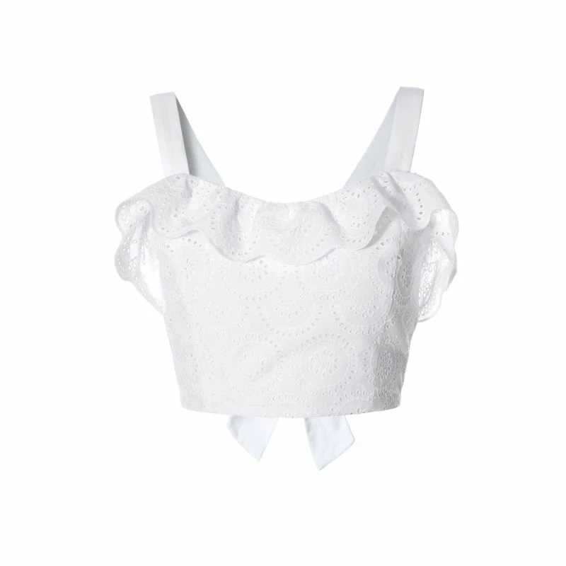 A slightly crinkled frill with an openwork edge subtly decorates the top.