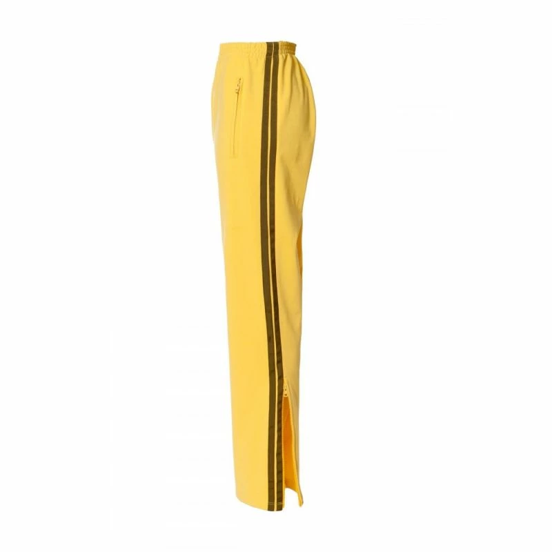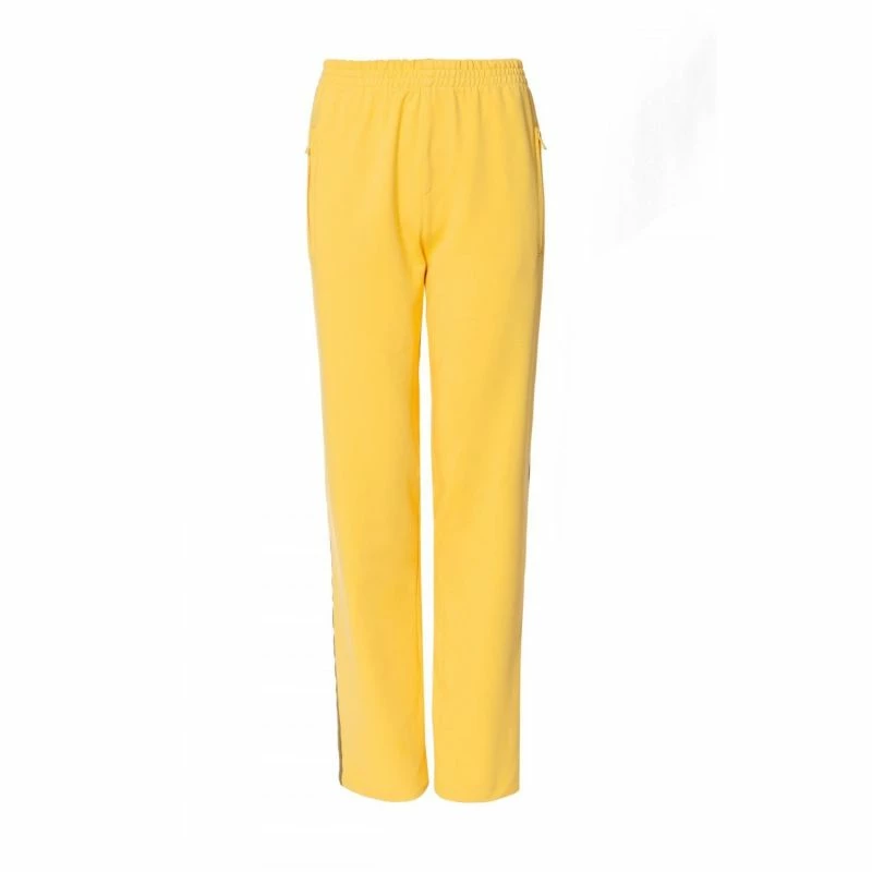 Along the legs, there is a double narrow stripe in a khaki shade that stays in contrast and at the same time wonderfully blends with the sunny colour of the pants.