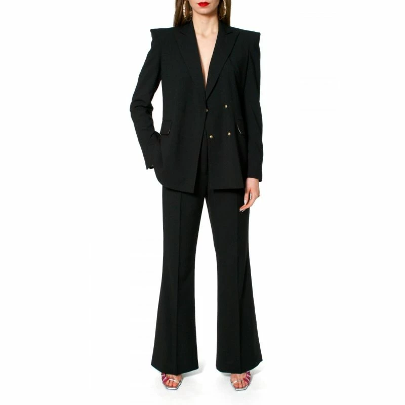 High-waisted pants with flared legs. The leg line is perfectly modelled to slim and lengthen the legs. Pants with a clearly defined crease at the front and back of the leg and with comfortable pockets on the sides. On the outside of the legs cut. Put them on high heels sandals or moccasins on a high post. Making a perfect patch with Marina Neutral Black Blazer.